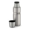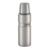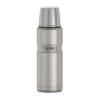 Классический мини-термос знаменитой серии KING не только выглядит превосходно, но и обладает безупречными характеристиками, как и все представители «королевской» линейки легендарного бренда THERMOS. Напитки сохраняются в нём горячими не менее 12 часов или холодными более суток благодаря инновационной технологии вакуумизации межстеночного пространства. Термоизолирующие свойства термоса усиливает глубокая винтовая пробка, в конструкции которой предусмотрены специальные пазы для выливания напитка, что позволяет не выкручивать пробку полностью и тем самым снизить воздействие температуры окружающей среды. Двуслойную крышку из нержавеющей стали и термостойкого пищевого пластика можно использовать как чашку.