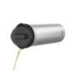 Подача напитка максимально удобна и упрощена – для разливания в чашки или бокалы не придётся снимать крышку-пробку, достаточно повернуть её верхнюю часть всего лишь на четверть оборота (90 градусов). Для удобства открывания и закрывания предусмотрена выступающая ручка и указатели поворота в виде стрелочек, а под крышкой скрываются два выливных носика с противоположных сторон. Оптимальные по размеру выливные отверстия и плавная форма носиков позволяет контролировать интенсивность потока жидкости. Крышка имеет оригинальную форму, в закрытом состоянии перекрывающую носики для защиты от попадания пыли. Двойная крышка-пробка легко разбирается для тщательной очистки, держатель фильтр-пакетов также легко снимается и устанавливается в основание крышки-пробки. Термос прост в уходе: благодаря широкому горлышку его легко мыть.