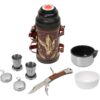 Отличный подарочный термос для дорогого вам человека! Включает в себя термос на 1,2 л в чехле из натуральной кожи с художественным выжиганием, 2 складных стакана и многофункциональный нож.