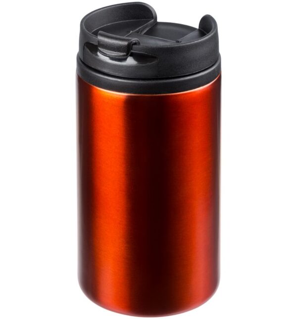 Двухслойная конструкция из пищевого пластика внутри и нержавеющей стали снаружи. Герметичная завинчивающаяся крышка с откидным клапаном для питья.