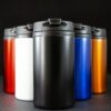 Двухслойная конструкция из пищевого пластика внутри и нержавеющей стали снаружи. Герметичная завинчивающаяся крышка с откидным клапаном для питья.