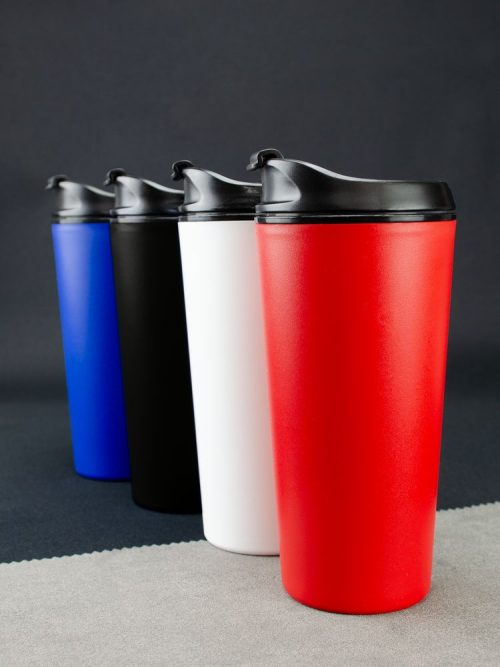 Двухслойная конструкция из пластика внутри и снаружи. Крышка с откидным клапаном для питья.
