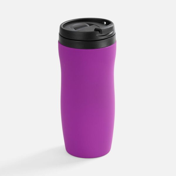 Двухслойная конструкция из нержавеющей стали снаружи и пищевого пластика внутри. Герметичная завинчивающаяся крышка с откидным клапаном для питья. Покрытие софт-тач. В отверстие в крышке можно вставить шнурок для удобного ношения стакана на руке. Шнурок в комплект не входит.