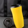 Двухслойная конструкция из нержавеющей стали снаружи и пищевого пластика внутри. Герметичная завинчивающаяся крышка с откидным клапаном для питья. Покрытие софт-тач. В отверстие в крышке можно вставить шнурок для удобного ношения стакана на руке. Шнурок в комплект не входит.