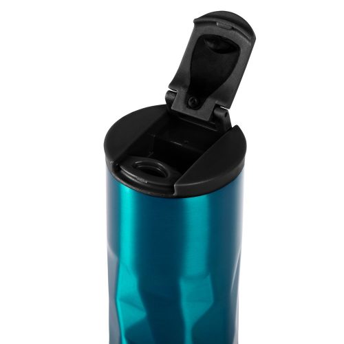 Двухслойная вакуумная конструкция из нержавеющей стали внутри и снаружи, герметичная завинчивающаяся крышка с откидным клапаном для питья.