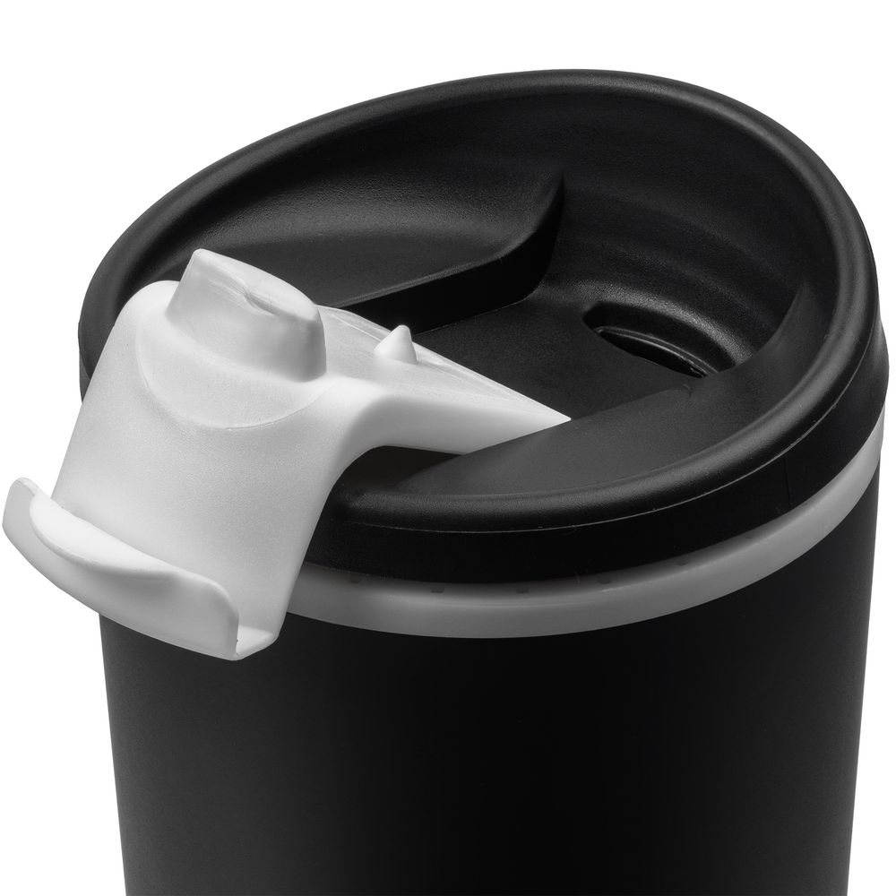 Двухслойная конструкция из пластика внутри и нержавеющей стали снаружи. Герметичная завинчивающаяся крышка с откидным клапаном для питья.
