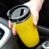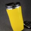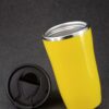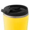 Двухслойная конструкция из пластика снаружи и пищевой нержавеющей стали внутри. Герметичная завинчивающаяся крышка с откидным клапаном для питья. В отверстие в крышке можно вставить шнурок для удобного ношения стакана на руке. Шнурок в комплект не входит.