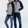Двухцветная утепленная толстовка унисекс с рукавами реглан и карманом-кенгуру.