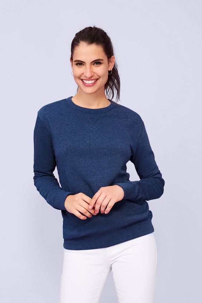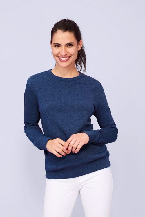 Женская утепленная толстовка с круглым вырезом и декоративной треугольной вставкой.