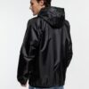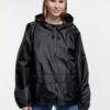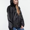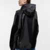 Укороченный дождевик свободного кроя из ткани таффета с влагозащитным покрытием. Складывается в мешочек — удобно брать с собой.
