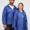 Укороченный дождевик свободного кроя из ткани таффета с влагозащитным покрытием. Складывается в мешочек — удобно брать с собой.
