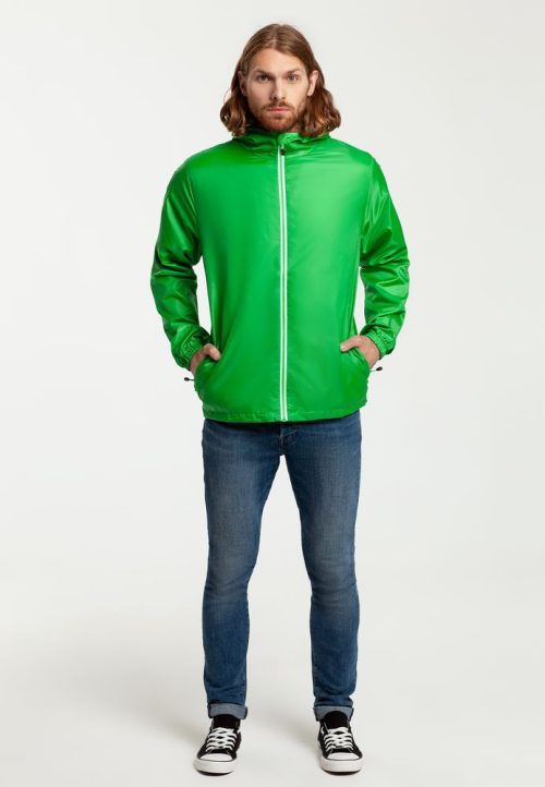 Ветровка с капюшоном из ветро- и влагоустойчивого полиэстера. Передние карманы на молнии, утепленная подкладка из трикотажа, манжеты и капюшон на резинке. Молнии YKK.