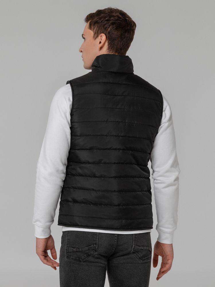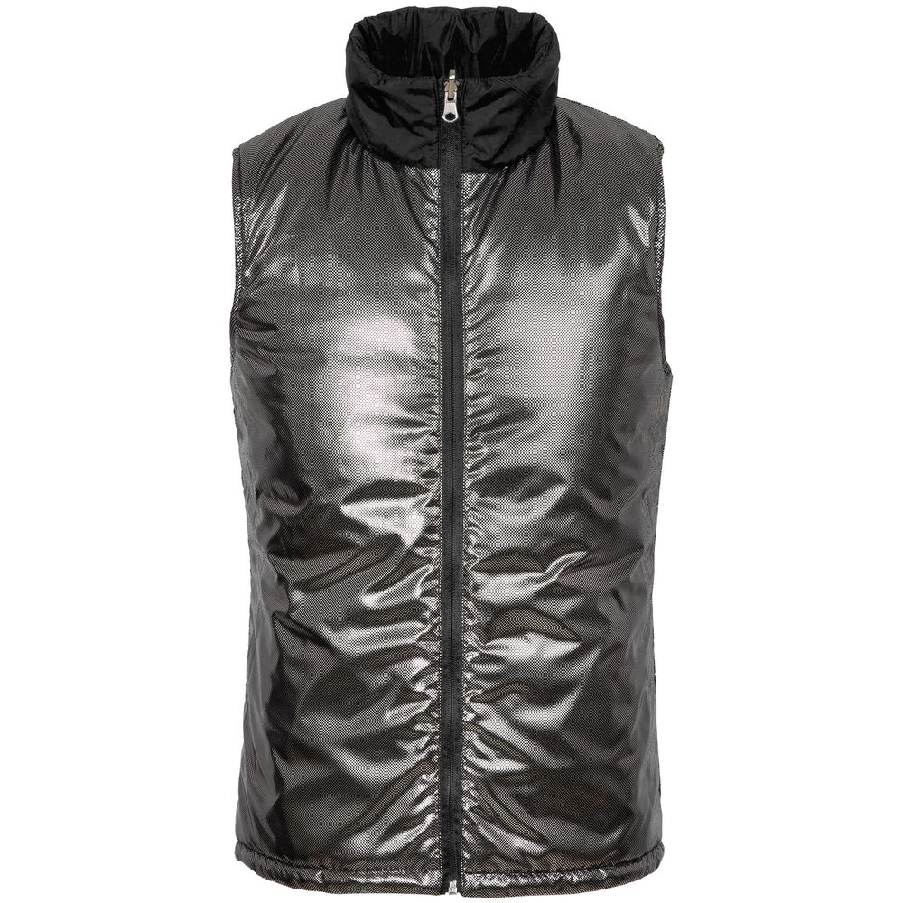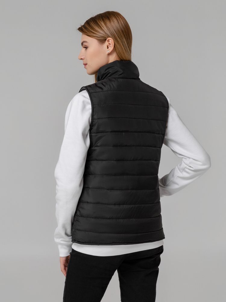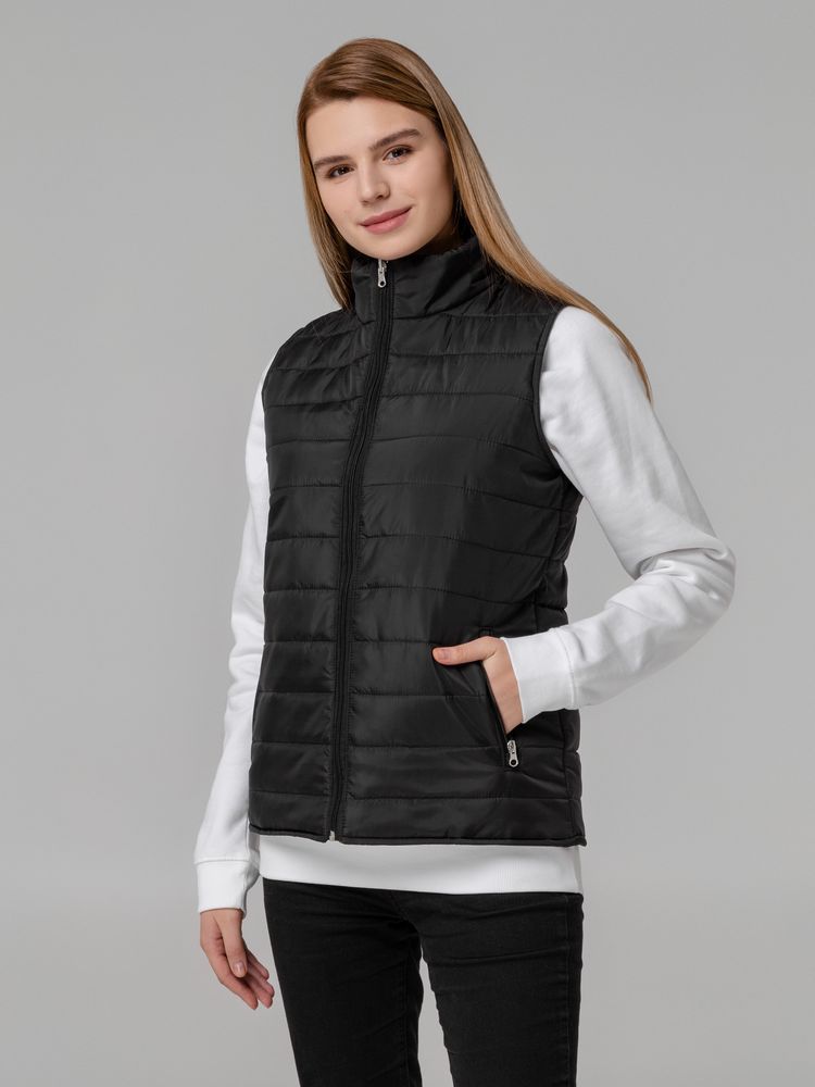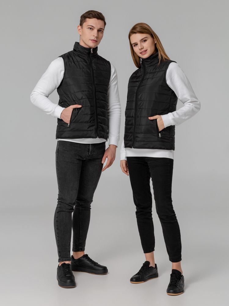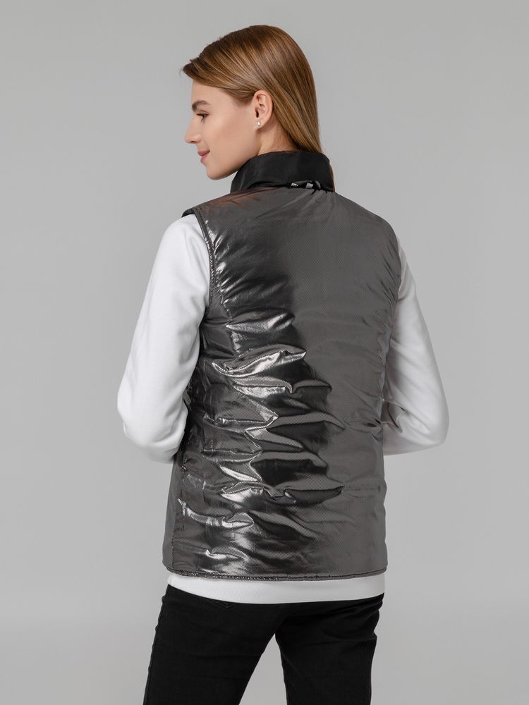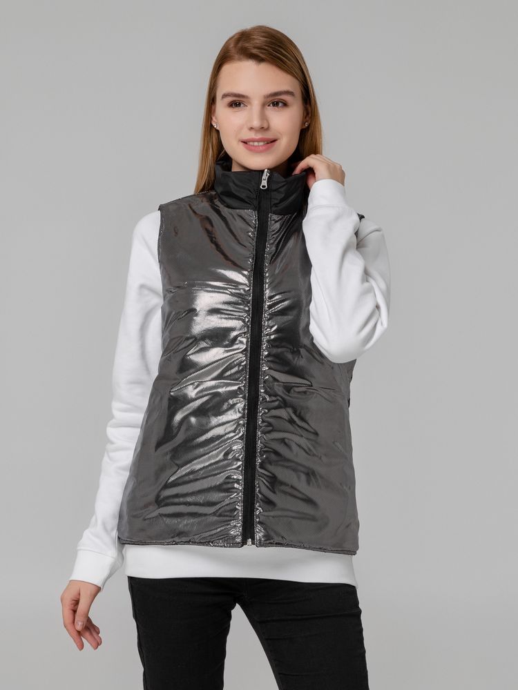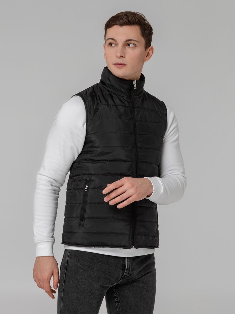 Жилет с воротником-стойкой и двумя наружными карманами на молнии. Застежка-молния в тон жилета.