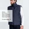 Мужской утепленный жилет с воротником-стойкой и удлиненной спинкой. Выполнен из ткани оксфорд с водоотталкивающим покрытием.