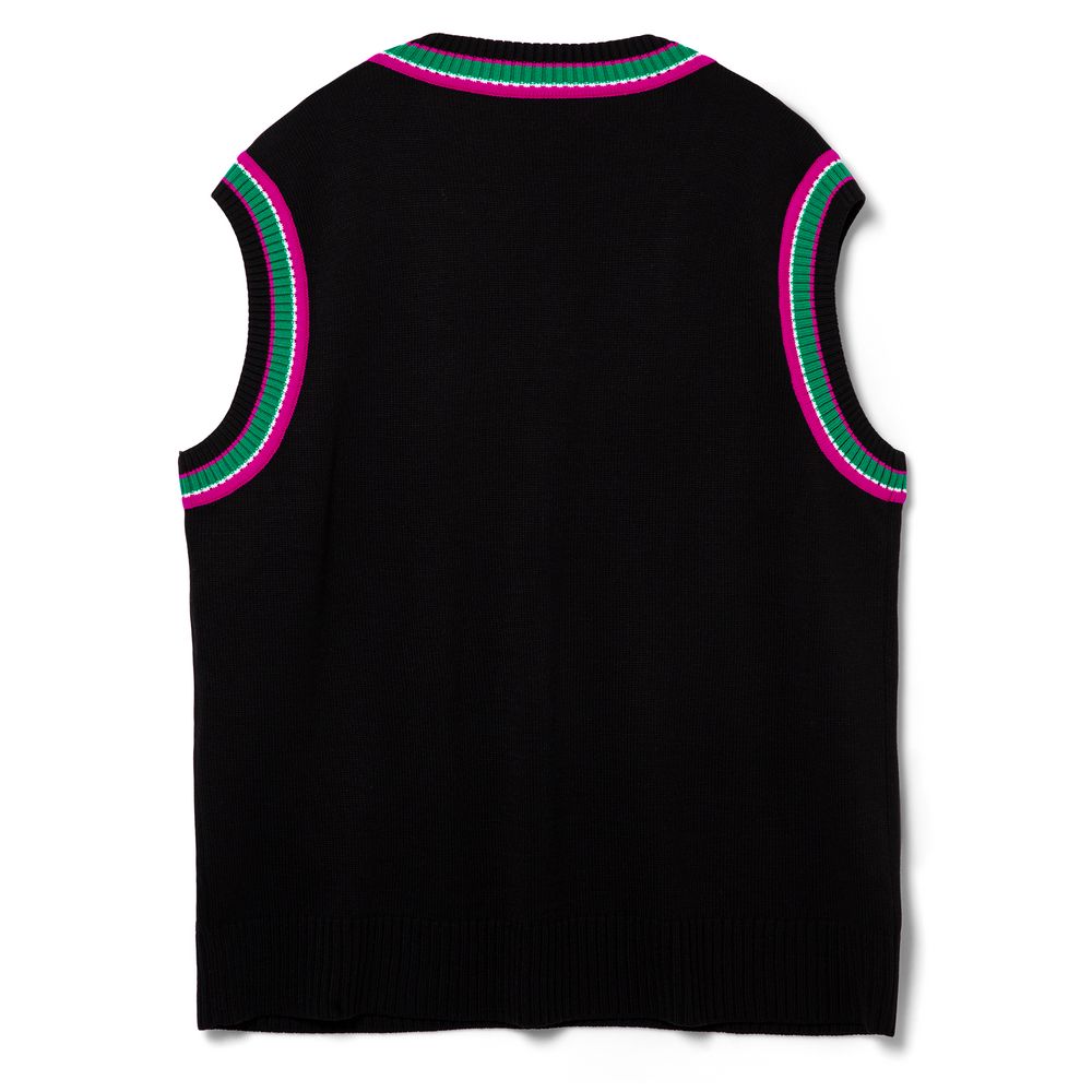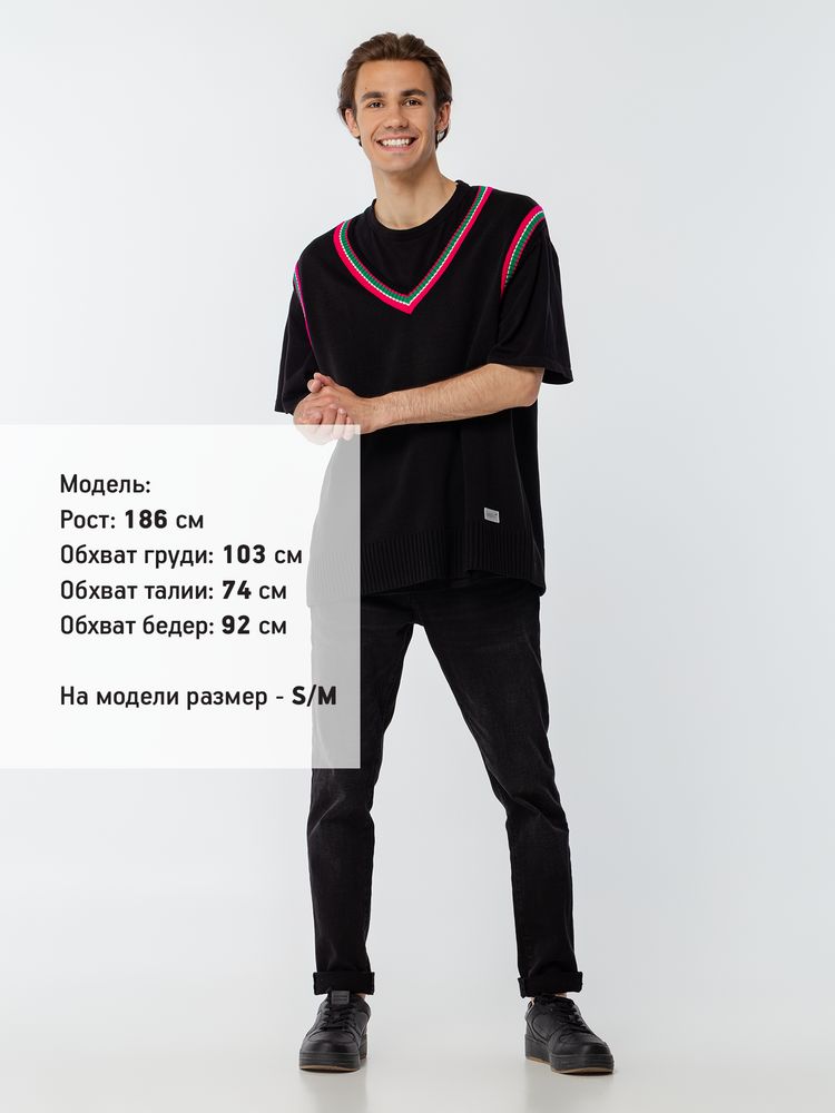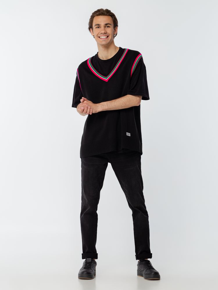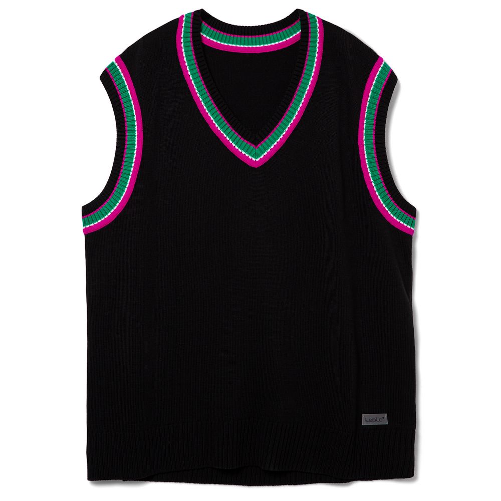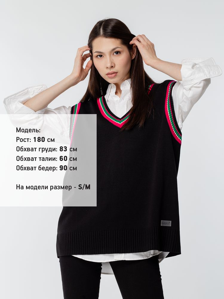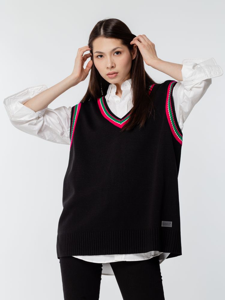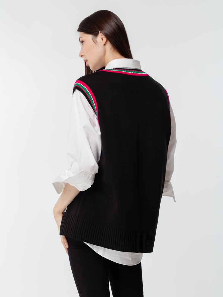 Оверсайз жилет с V-образным вырезом и цветной отделкой.