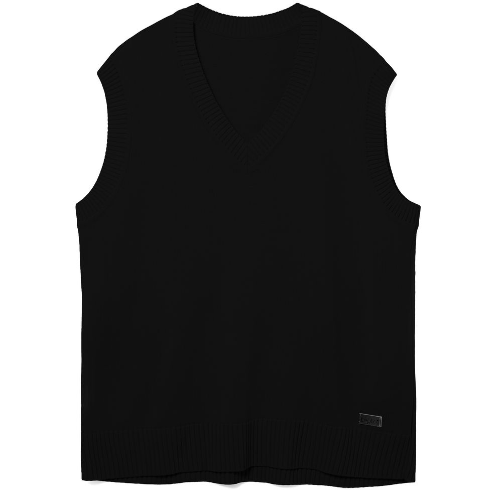 Простой по вязке однотонный жилет с посадкой гипероверсайз и широкой резинкой в тон по проймам и вороту станет стильным дополнением к базовой капсуле и порадует любителей максимализма в одежде. Воплощение комфорта и эстетики.