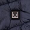 1. Подключите внешний аккумулятор к кабелю во внутреннем кармане куртки. 2. Нажмите и удерживайте кнопку нагрева в течение 2-5 секунд, пока не загорится цветовой индикатор. 3. Нажмите еще раз на кнопку, чтобы выбрать температурный режим. 4. Чтобы выключить функцию обогрева, нажмите на кнопку и удерживайте в течение 2-5 секунд.