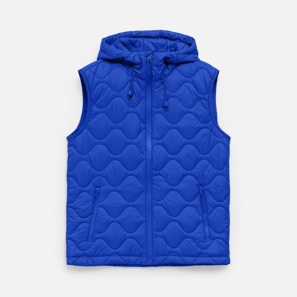 Пройма капюшона и рукава жилета обработаны эластичной лентой