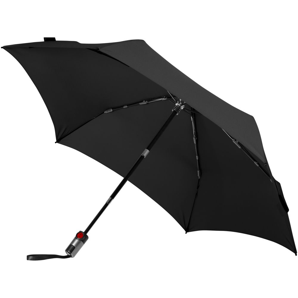 Зонт можно сложить не полностью — он зафиксируется в выбранном положении и не будет раскрываться. Чтобы раскрыть зонт, потребуется сначала полностью сложить его.