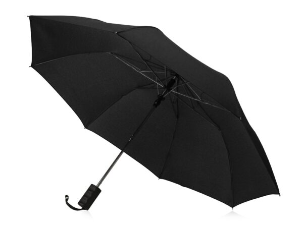 Полуавтоматический складной зонт легко открывается и закрывается в 2 сложения. Прорезиненная ручка эргономической формы для вашего удобства. Удлиненный ремешок на липучке для фиксации купола в закрытом виде специально разработан для простоты сборки зонта. Чехол в комплекте.