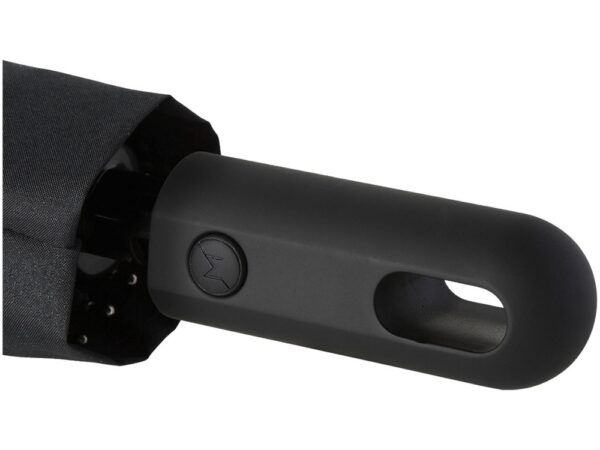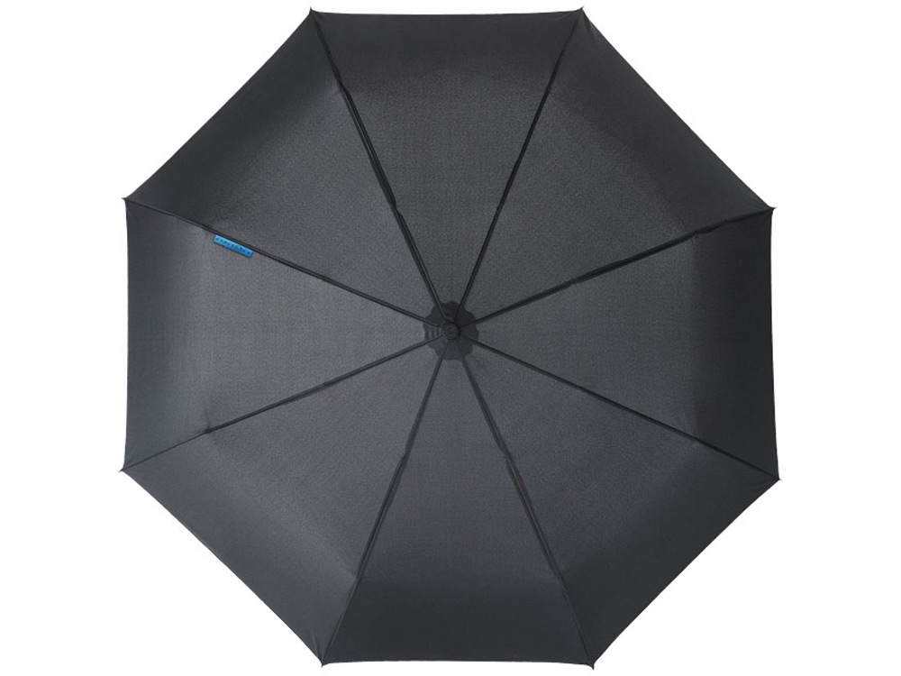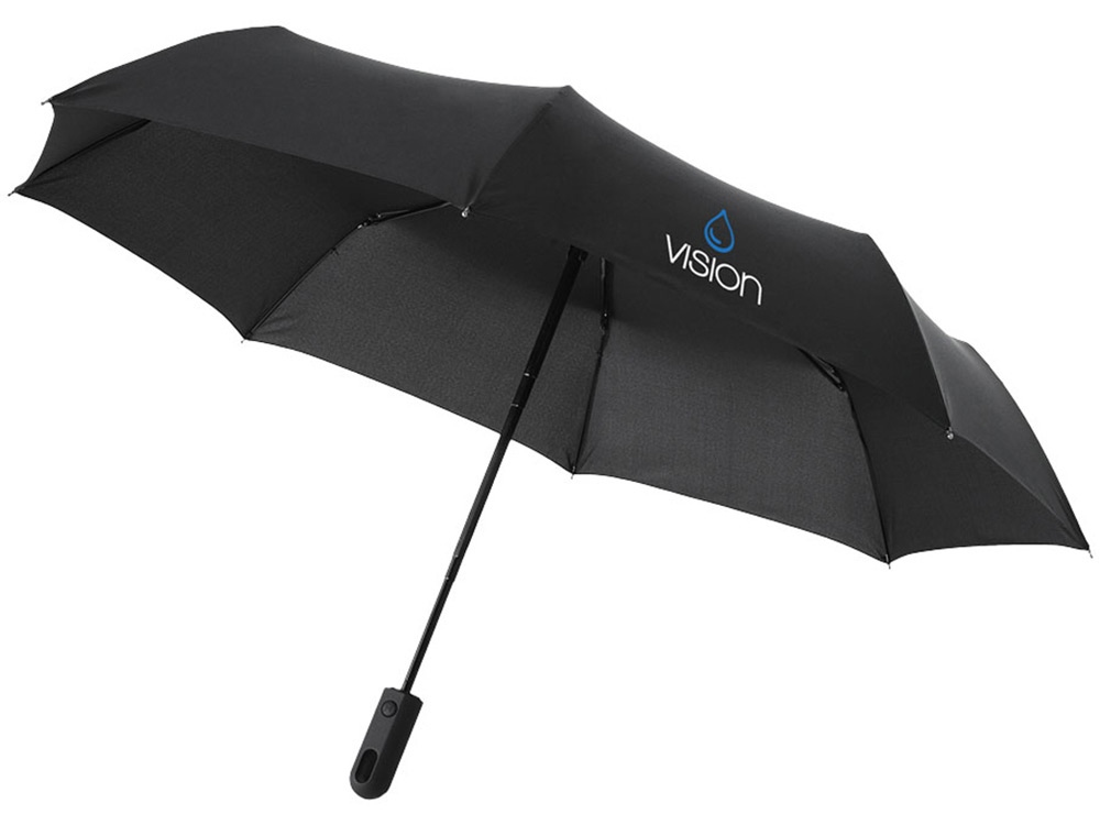 Эксклюзивный автоматически открывающийся и закрывающийся зонт в три сложения. Черная металлическая трость, стекловолоконные спицы и пластиковая прорезиненная ручка. Предлагается в чехле под цвет зонта. Длина зонта в сложенном виде: 31 см. Эпонж полиэстер. Трафаретная печать (1 цвет (цветные изделия)) на данный товар осуществляется бесплатно. Оплачивается только настройка оборудования в размере 8700 рублей на весь тираж.