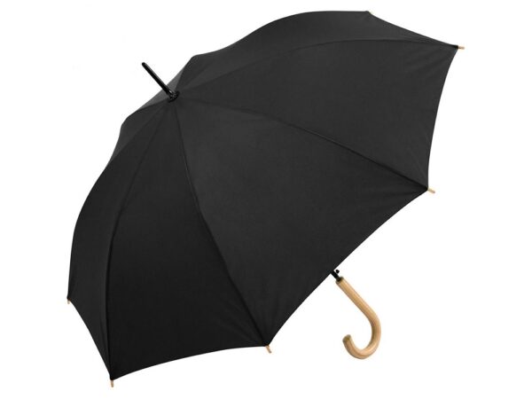 Зонт-трость «Okobrella» с деревянной ручкой и куполом из переработанного пластика - купить оптом по цене 2545.15 руб в Москве - интернет-магазин Сувенирная продукция и мерч с логотипом компании на заказ в Москве - Идеальные подарки клиентам | TairGifts