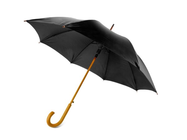 Полуавтоматический зонт-трость с деревянной ручкой выполнен из качественных материалов и устойчив к сильным порывам ветра. Яркие, сочные цвета в ассортименте.